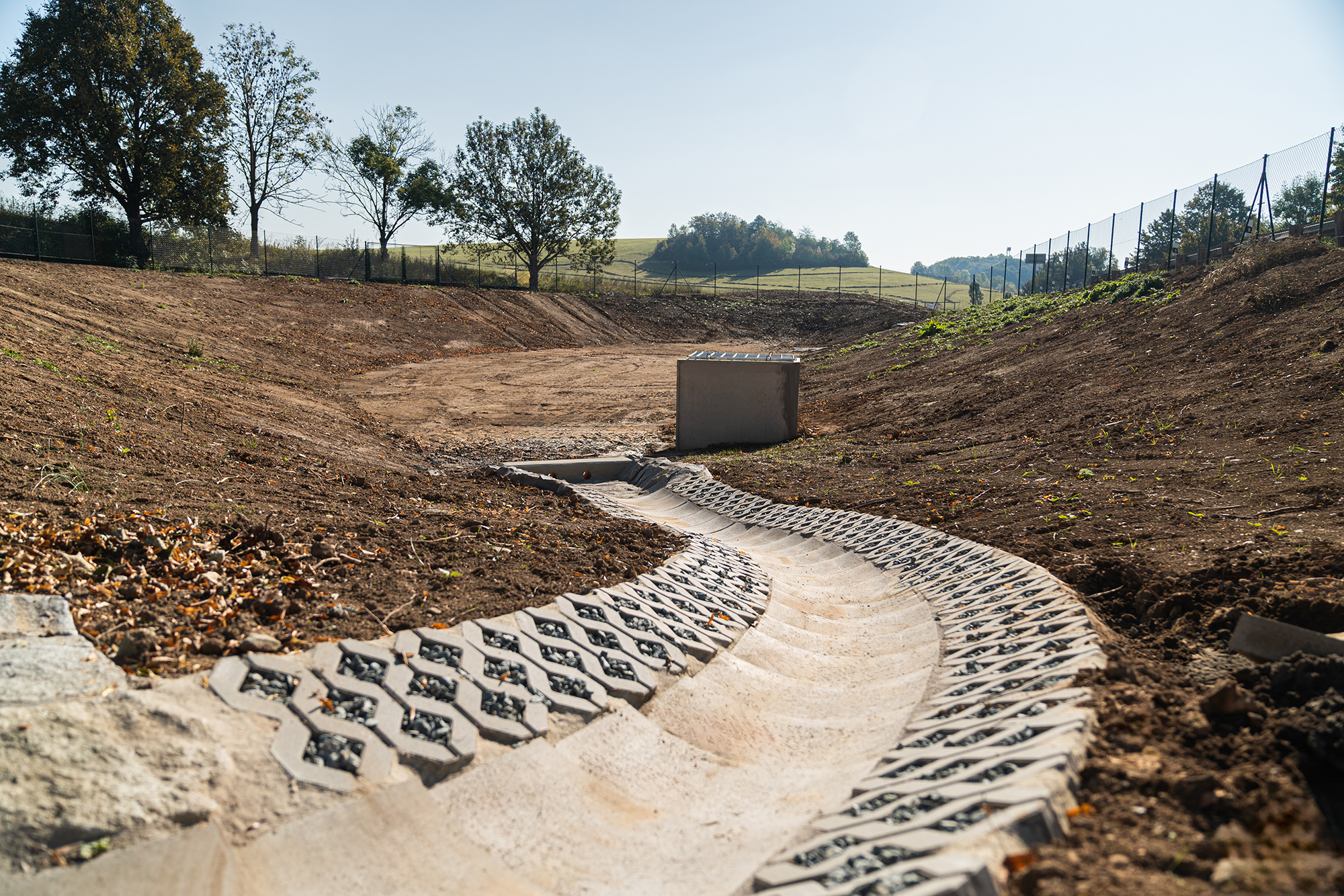 Cílem stavby bylo bezpečně zachytit, odvést, vyčistit a vsakovat dešťové vody tak, aby již neohrožovaly okolí a zároveň splňovaly současné technické i ekologické požadavky.