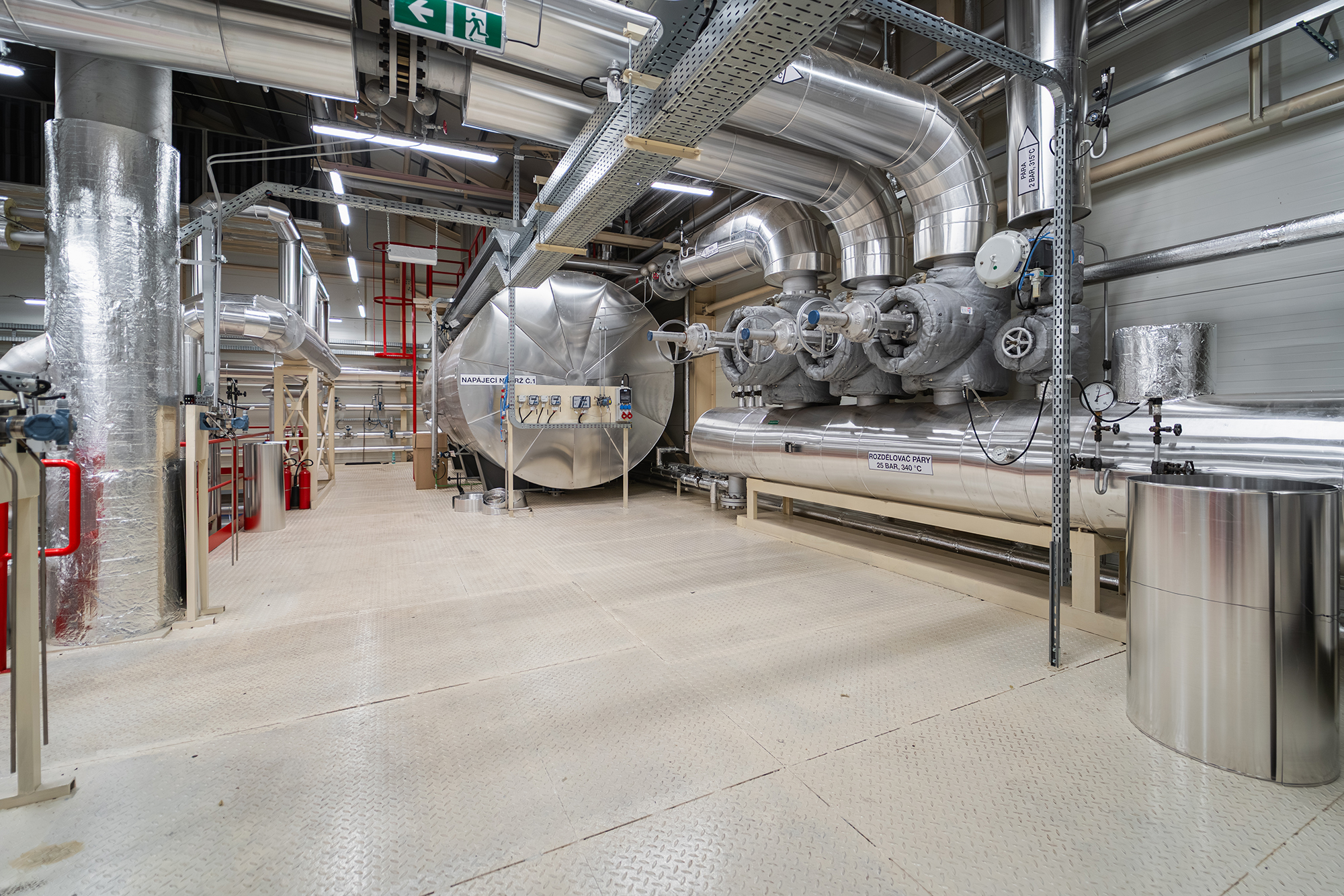 Součástí projektu byla výstavba kotelny vybavené dvěma moderními parními kotli s výkonem 45 t páry. Nová technologie zajišťuje stabilní dodávku technologické páry pro celý areál a významně snižuje emise i celkovou ekologickou stopu provozu. Areál se díky tomu zbavil spalování uhlí, skladování paliva i úletů popílku, což přispívá ke zlepšení kvality ovzduší v okolí.