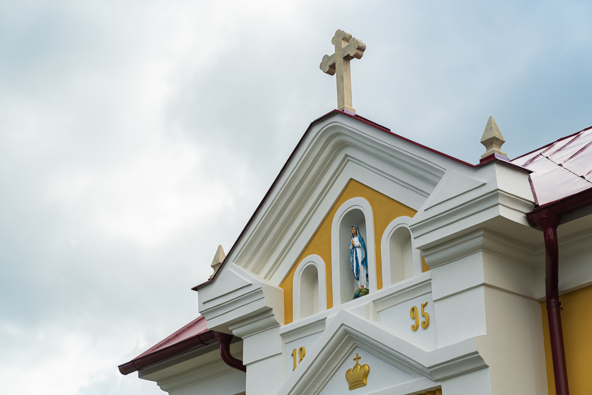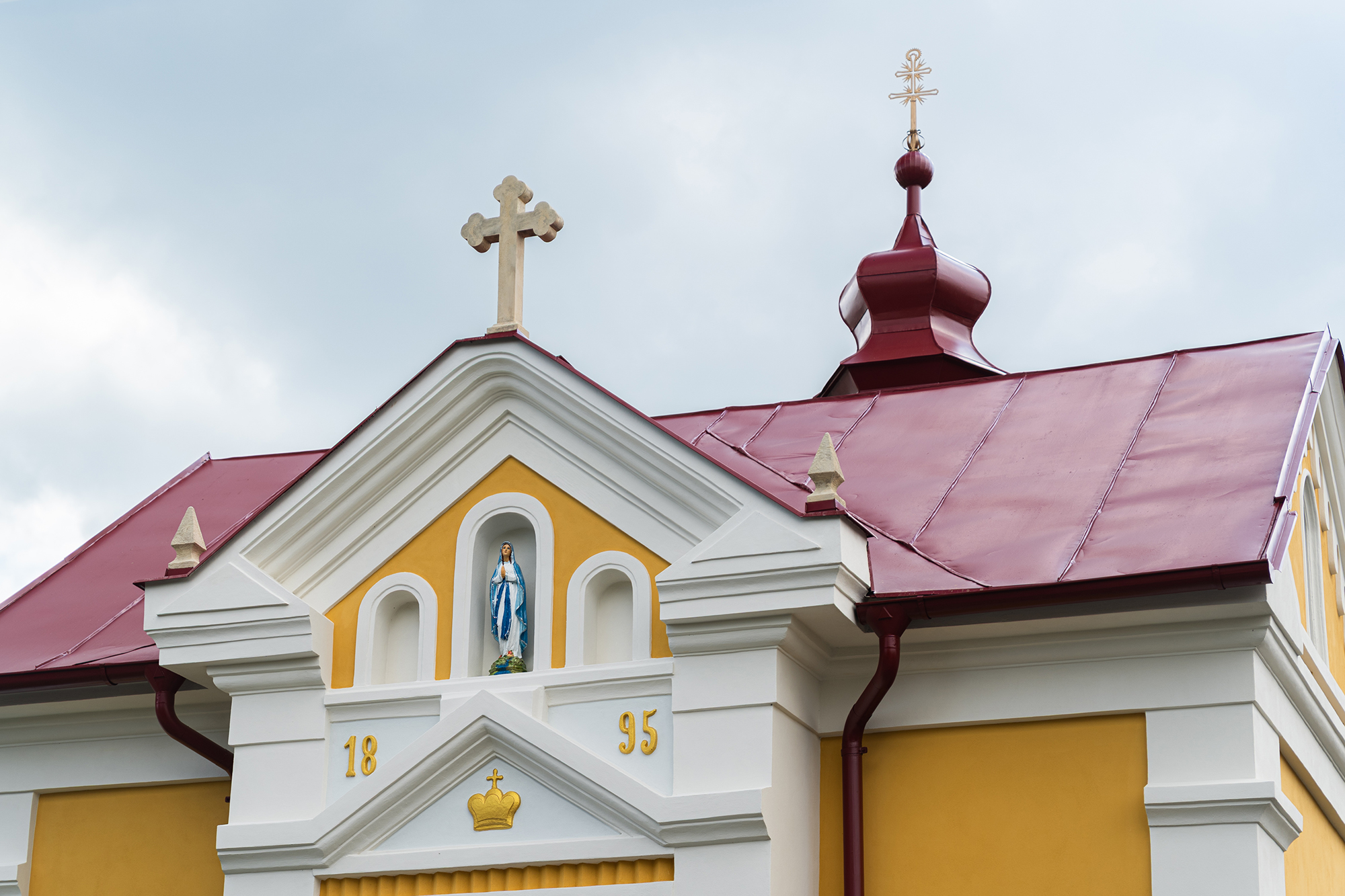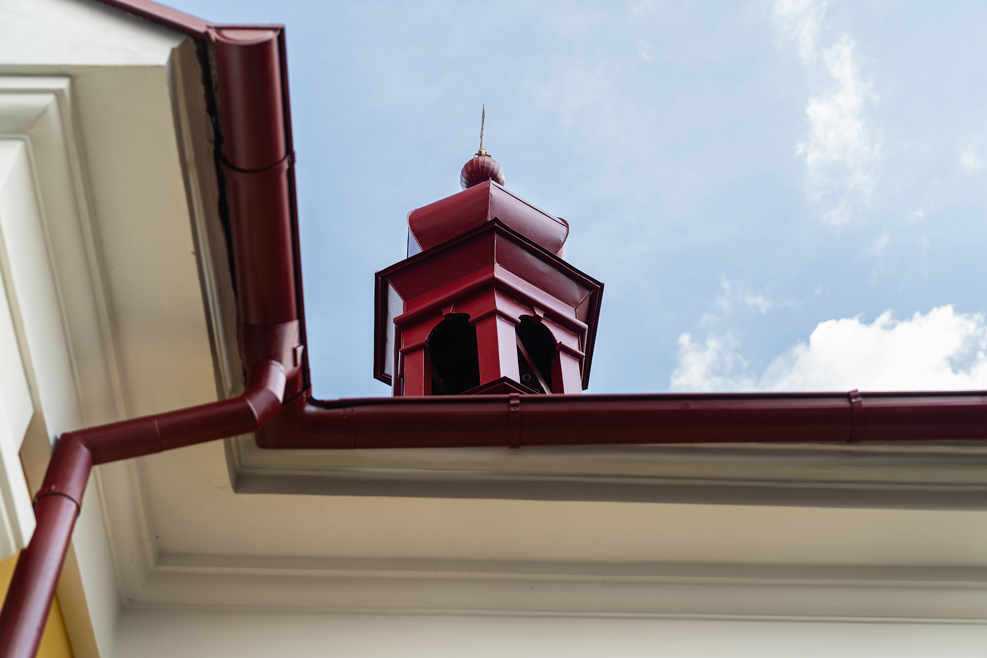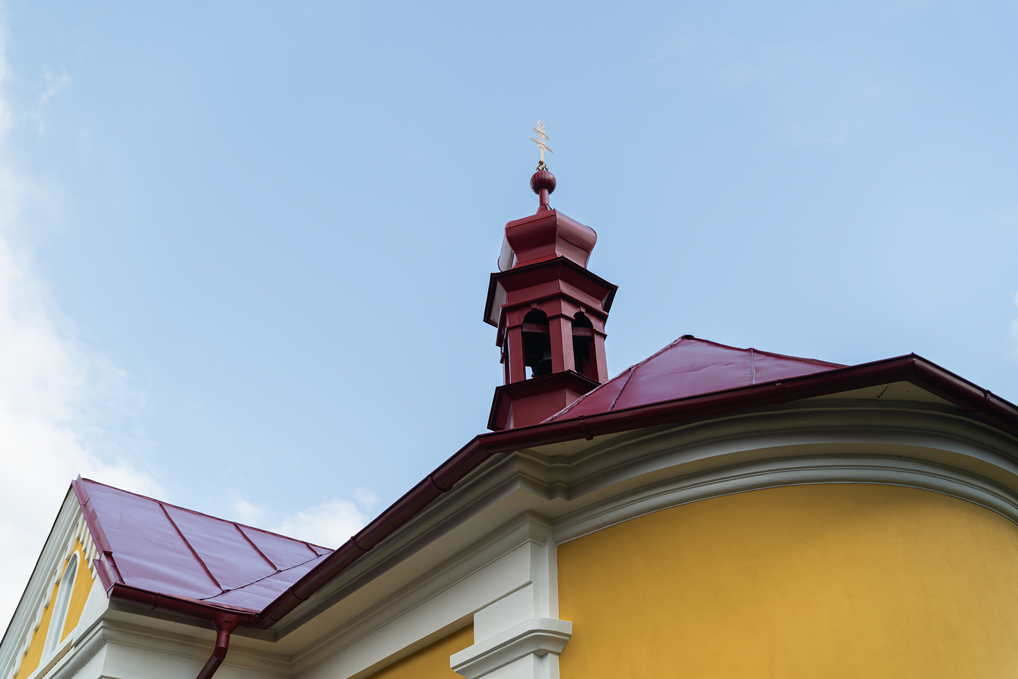- Finální nátěry – povrch fasády je ošetřen barvou na bázi sol-silikátových pojiv, která je vhodná pro organické, minerální i smíšené podklady. Barevné řešení respektuje původní vzhled: bílá tektonika a žluté hlavní plochy.